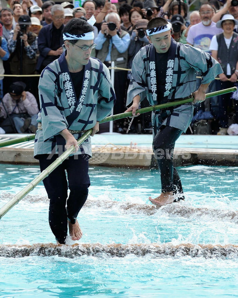 ニュース ライフ こぼれ話 伝統芸能「木場の角乗り」、江戸の技を披露 2010年10月17日 17:04 発信地:東京 [ アジア・オセアニア 東京 ] このニュースをシェア ‹ › ❮ 5/6 ❯ 東京都江東区の区民祭りで、江戸時代のいかだ師に由来する伝統芸能「木場の角乗り」を演じる「木場角乗り保存会」のメンバーら(2009年10月18日撮影)。(c)AFP/Toru YAMANAKA 画像作成中 ! 【10月17日 AFP】東京都江東区の区民祭りで17日、江戸時代のいかだ師が生んだ伝統芸能「木場の角乗り」が演じられた。水に浮かべた丸太を鳶口(とびくち)で操っていかだに組む技術に由来するさまざまな技を「木場角乗り保存会」のメンバーらが披露した。(c)AFP ライフ 一覧へ> メディア・報道関係・法人の方向け 写真・動画 購入のお問合せ>
