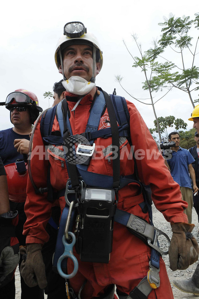 エクアドルの事故が発生する直前には、チリのサンホセ(San Jose)鉱山の地下約700メートルで、2か月以上にわたり閉じ込められていた作業員33人が無事救出されたばかりだった。(c)AFP/Santiago Piedra