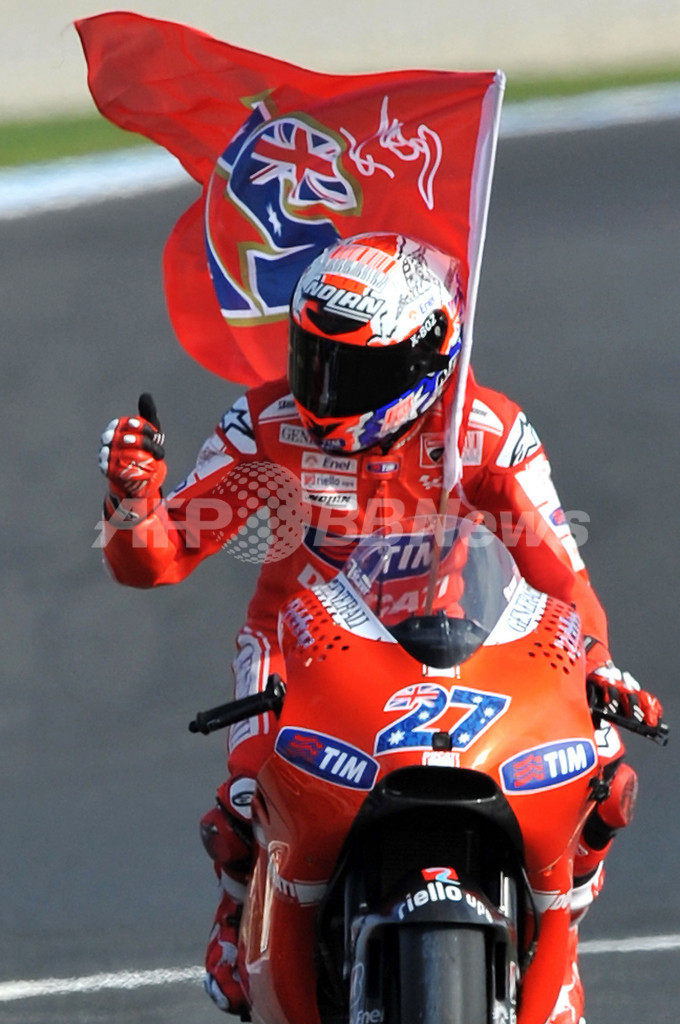 【10月17日 AFP】世界ロードレース選手権(WGP 2010)第16戦オーストラリアGP、MotoGPクラス決勝。ポールポジションからスタートしたドゥカティ(Ducati Team)のケーシー・ストーナー(Casey Stoner、オーストラリア)が41分9秒128で4連覇を達成し、今季3勝目を挙げた。