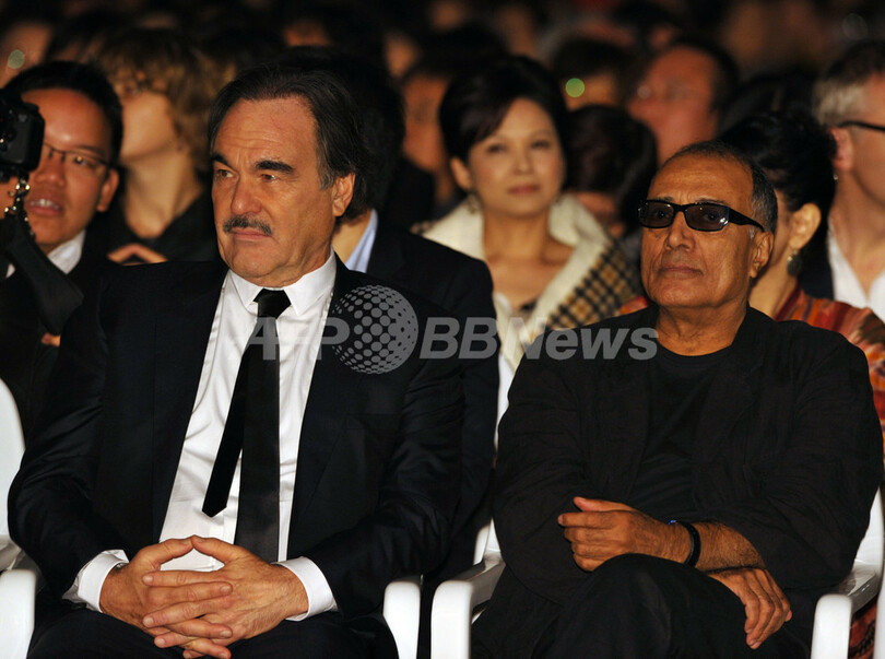 9日間にわたって開催された第15回釜山国際映画祭(Pusan International Film Festival)は15日、オムニバス映画『Camellia』のクロージング上映と授賞式をもって閉幕した。『Camellia』は、日本、韓国、タイの3人の監督が手がけた3つのストーリーからなる作品。閉会式には日本の行定勲(Isao Yukisada)監督のパートに出演した吉高由里子(Yuriko Yoshitaka)らが出席した。写真は、閉会式に出席した米オリバー・ストーン(Oliver Stone)監督(左)とイランのアッバス・キアロスタミ(Abbas Kiarostami)監督(2010年10月15日撮影)。(c)AFP/KIM JAE-HWAN