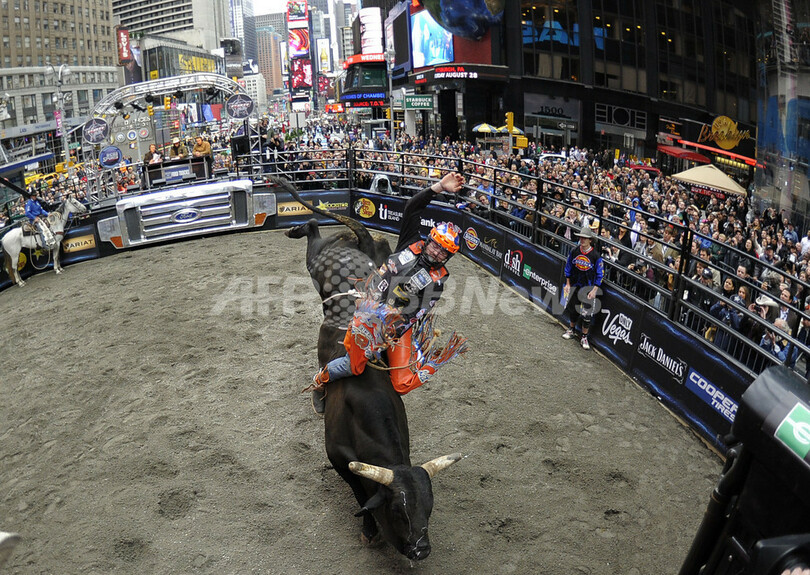 ニュース ライフ ニューヨークの真ん中でロデオ大会 2010年10月18日 9:50 発信地:ニューヨーク/米国 [ 北米 米国 ] このニュースをシェア ‹ › ❮ 51/53 ❯ 米ニューヨーク(New York)のタイムズスクエア(Times Square)で15日、ロデオ大会が開催された。このイベントは、20~24日にラスベガスで行われるPBR(プロフェッショナルブルライダー)の大会をPRするもので、PBRの上位10人のブルライダーが自慢の腕前を披露した。(2010年10月15日撮影)(c)AFP/TIMOTHY A. CLARY 画像作成中 ! 【10月18日 AFP】米ニューヨーク(New York)のタイムズスクエア(Times Square)で15日、ロデオ大会が開催された。(c)AFP ライフ 一覧へ> メディア・報道関係・法人の方向け 写真・動画 購入のお問合せ>