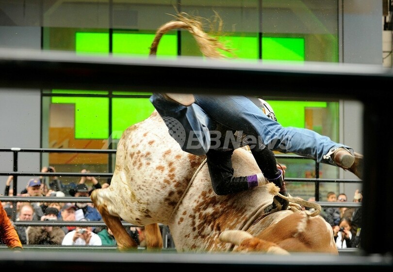 Times Square)で15日、ロデオ大会が開催された。(c)AFP