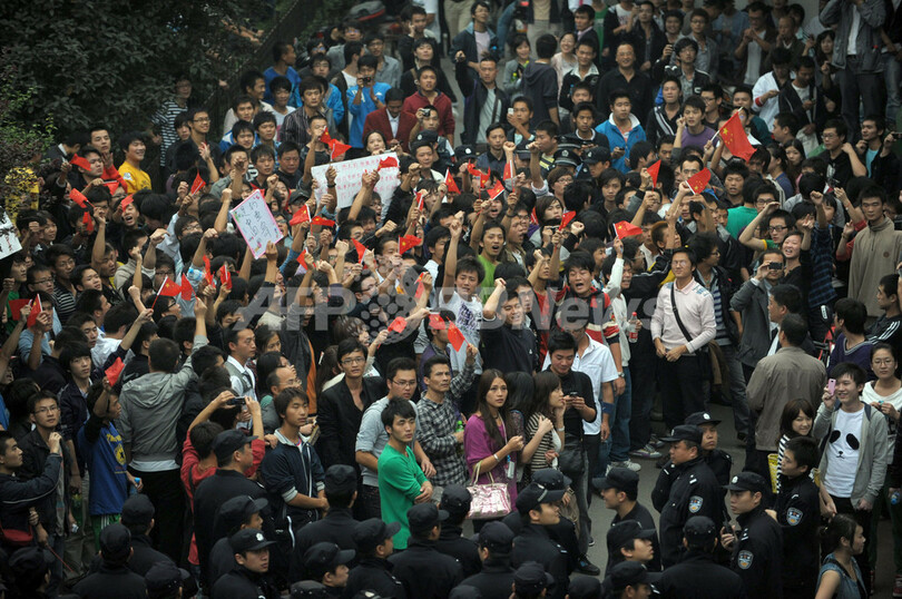 ニュース 政治・経済 武漢でも反日デモ、日本の尖閣領有に抗議 2010年10月18日 19:52 発信地:北京/中国 [ 中国・台湾 中国 ] このニュースをシェア ‹ › ❮ 12/12 ❯ 尖閣諸島沖での中国漁船と日本の巡視船の衝突事故に端を発した日中間の外交論争をめぐり、中国湖北(Hubei)省武漢(Wuhan)市で日本に抗議するデモが行われ、数百人が参加した。16日には四川(Sichuan)省成都(Chengdu)市、陝西(Shaanxi)省西安(Xian)市、河南(Henan)省鄭州(Zhengzhou)市、17日には四川省綿陽(Mianyang)市で同様のデモが起きていた。18日、北京(Beiing)でデモは起きなかったが、日本大使館前には警察官が出て警戒に当たった。写真は武漢のデモ隊(2010年10月18日撮影)。(c)AFP 画像作成中 ! 【10月18日 AFP】尖閣諸島沖での中国漁船と日本の巡視船の衝突事故に端を発した日中間の外交論争をめぐり、中国湖北(Hubei)省武漢(Wuhan)市で日本に抗議するデモが行われ、数百人が参加した。(c)AFP 政治・経済 一覧へ> メディア・報道関係・法人の方向け 写真・動画 購入のお問合せ>