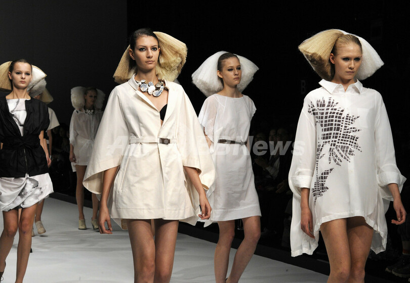 【10月20日 AFP】第11回「東京発 日本ファッション・ウィーク(JFW in TOKYO)」が22日まで東京ミッドタウンを主会場に開催される。19日には「カミシマチナミ(KAMISHIMA CHINAMI)」が11年春夏コレクションを発表した。(c)AFP