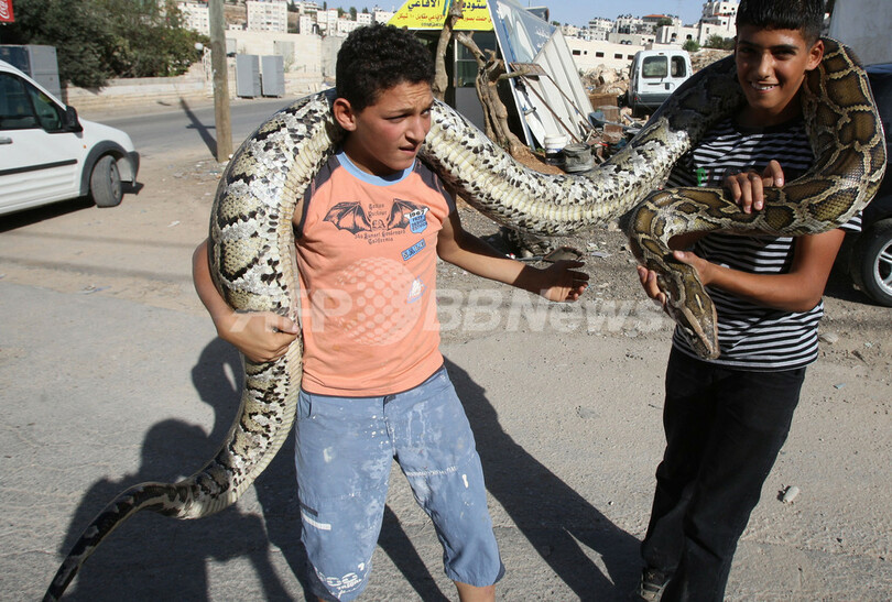 けれど自宅前に置いた小屋で、10匹を超えるヘビを飼っているのが、パレスチナ自治区ヨルダン川西岸(West Bank)のラマラ(Ramallah)に住む公務員、ジャマル・アンワシ(Jamal Amwasi)さん(35)一家だ。中には数メートルある大ヘビもいる。「このヘビたちはわが家の家族だ。毎日朝晩、面倒を見て、エサをやっているよ」