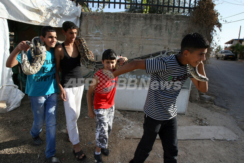 けれど自宅前に置いた小屋で、10匹を超えるヘビを飼っているのが、パレスチナ自治区ヨルダン川西岸(West Bank)のラマラ(Ramallah)に住む公務員、ジャマル・アンワシ(Jamal Amwasi)さん(35)一家だ。中には数メートルある大ヘビもいる。「このヘビたちはわが家の家族だ。毎日朝晩、面倒を見て、エサをやっているよ」