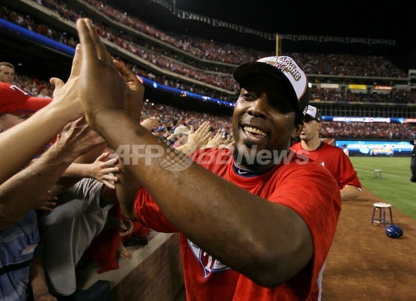 シリーズ最優秀選手(MVP)には、4本の本塁打を放ち、7打点を挙げたレンジャーズのジョシュ・ハミルトン(Josh Hamilton)が選出された。(c)AFP