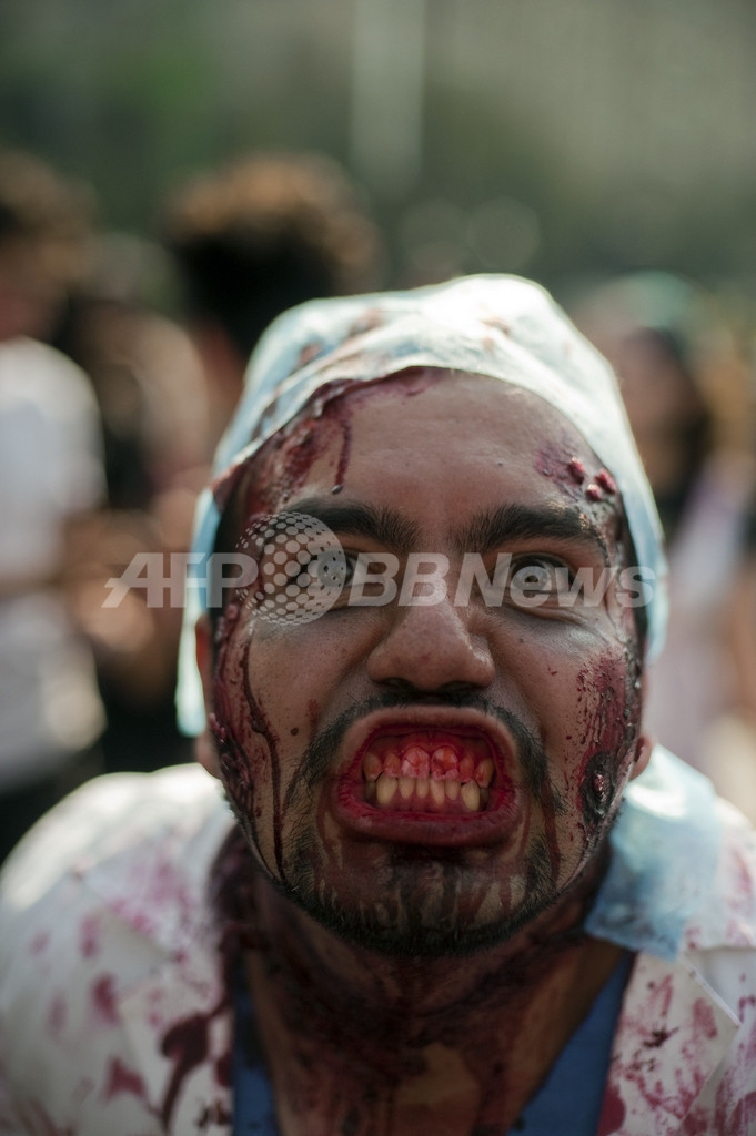 ニュース ライフ メキシコ市を「ゾンビ」が大行進 2010年10月25日 19:19 発信地:メキシコ市/メキシコ [ 中南米 メキシコ ] このニュースをシェア ‹ › ❮ 5/11 ❯ メキシコの首都メキシコ市(Mexico City)中心部のレフォルマ通り(Reforma Avenue)で23日、ゾンビ姿の人びとが行進する「ゾンビウォーク(Zombie Walk)」が開かれた。ゾンビウォークは近年、世界各地で行われるようになっている。写真はゾンビ姿で行進する男性(2010年10月23日撮影)。(c)AFP/Alfredo Estrella【動画】ゾンビが街を占拠(Youtube/AFPBB News公式チャンネル) 画像作成中 ! 【10月25日 AFP】メキシコの首都メキシコ市(Mexico City)中心部のレフォルマ通り(Reforma Avenue)で23日、ゾンビ姿の人びとが行進する「ゾンビウォーク(Zombie Walk)」が開かれた。(c)AFP ライフ 一覧へ> メディア・報道関係・法人の方向け 写真・動画 購入のお問合せ>