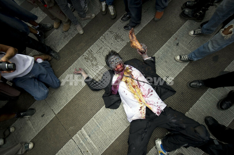 ニュース ライフ メキシコ市を「ゾンビ」が大行進 2010年10月25日 19:19 発信地:メキシコ市/メキシコ [ 中南米 メキシコ ] このニュースをシェア ‹ › ❮ 2/11 ❯ メキシコの首都メキシコ市(Mexico City)中心部のレフォルマ通り(Reforma Avenue)で23日、ゾンビ姿の人びとが行進する「ゾンビウォーク(Zombie Walk)」が開かれた。ゾンビウォークは近年、世界各地で行われるようになっている。写真はゾンビ姿で路上に倒れる男性(2010年10月23日撮影)。(c)AFP/Alfredo Estrella【動画】ゾンビが街を占拠(Youtube/AFPBB News公式チャンネル) 画像作成中 ! 【10月25日 AFP】メキシコの首都メキシコ市(Mexico City)中心部のレフォルマ通り(Reforma Avenue)で23日、ゾンビ姿の人びとが行進する「ゾンビウォーク(Zombie Walk)」が開かれた。(c)AFP ライフ 一覧へ> メディア・報道関係・法人の方向け 写真・動画 購入のお問合せ>