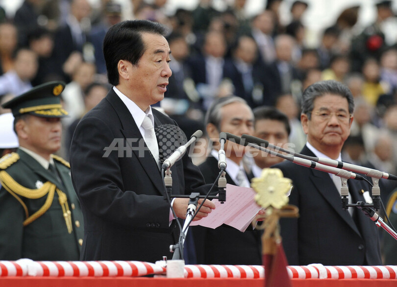 写真は、観閲式で訓示する菅直人首相(2010年10月24日撮影)。(c)AFP/Kazuhiro NOGI