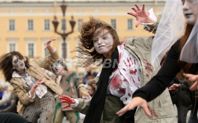 ニュース ライフ こぼれ話 マイケル偲んでゾンビも躍る、ロシア 2010年10月25日 17:28 発信地:サンクトペテルブルク/ロシア [ ロシア・CIS ロシア ] このニュースをシェア ‹ › ❮ 1/2 ❯ ロシア・サンクトペテルブルク(Saint-Petersburg)の宮殿広場で、ゾンビ姿で故マイケル・ジャクソン(Michael Jackson)さんのヒット曲「スリラー(Thriller)」にあわせて踊る人びと(2010年10月23日撮影)。(c)AFP/KIRILL KUDRYAVTSEV 画像作成中 ! 【10月25日 AFP】ロシア・サンクトペテルブルク(St. Petersburg)中心街の宮殿広場に23日現れた、ゾンビ姿の人びと。実は故マイケル・ジャクソン(Michael Jackson)さんのファンで、ジャクソンさんのヒット曲「スリラー(Thriller)」にあわせて踊りを披露した。(c)AFP ライフ 一覧へ> メディア・報道関係・法人の方向け 写真・動画 購入のお問合せ>