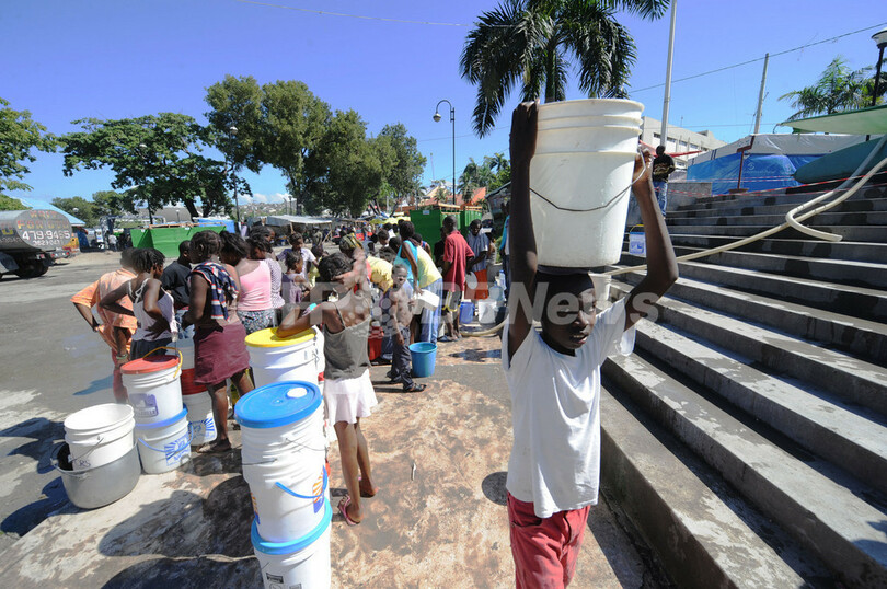 写真は首都ポルトープランス(Port-au-Prince)で水の供給を受ける住民(2010年10月25日撮影)。(c)AFP/Thony BELIZAIRE