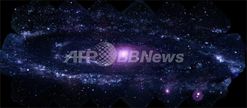 【10月29日 AFP】写真は、アンドロメダ銀河(Andromeda Galaxy、M31)の合成画像。米航空宇宙局(NASA)のガンマ線バースト観測衛星「Swift」に搭載された紫外線・光学望遠鏡がとらえた330枚の画像を合成した。紫外線望遠鏡がとらえた同銀河の画像としては、これまでで最も高解像度。
