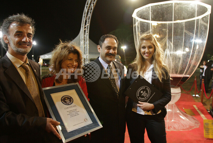 ニュース ライフ こぼれ話 世界最大のワイングラス、ギネス認定 高さ2.4メートル 2010年11月1日 8:23 発信地:ベイルート/レバノン [ 中東・北アフリカ レバノン ] このニュースをシェア ‹ › ❮ 6/6 ❯ レバノン・ベイルート(Beirut)で世界最大と認定されたワイングラス(2010年10月29日撮影)。(c)AFP/ANWAR AMRO 画像作成中 ! 【11月1日 AFP】レバノン・ベイルート(Beirut)で10月29日、高さ2.4メートル、幅1.65メートルの巨大ワイングラスが披露され、世界最大のワイングラスとしてギネス世界記録に認定された。(c)AFP ライフ 一覧へ> メディア・報道関係・法人の方向け 写真・動画 購入のお問合せ>