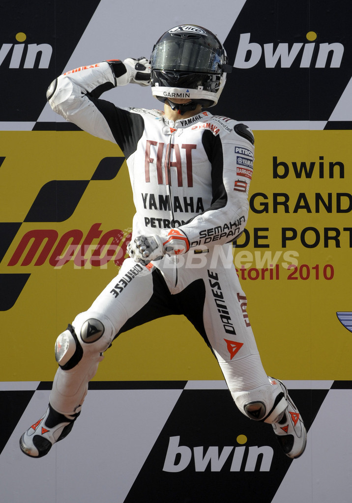 【11月1日 AFP】世界ロードレース選手権(WGP 2010)第17戦ポルトガルGP、MotoGPクラス決勝。ポールポジションからスタートしたフィアット・ヤマハ(Fiat Yamaha)のホルヘ・ロレンゾ(Jorge Lorenzo、スペイン)が46分17秒962で3連覇を達成し、今季8勝目を挙げた。
