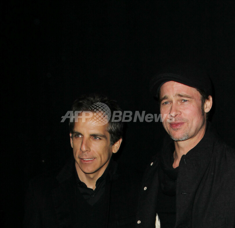 ブラッド・ピット(Brad Pitt)やティナ・フェイ(Tina Fey)らが声優を務めるアニメ『メガマインド(Megamind)』のプレミア上映会が3日、ニューヨーク(New York)で行われ、関係者が出席した。写真は、会場に姿を見せたブラッド・ピット(左)とプロデューサーを務めたベン・スティラー(Ben Stiller、2010年11月3日撮影)。(c)AFP/Elizabeth Pantaleo