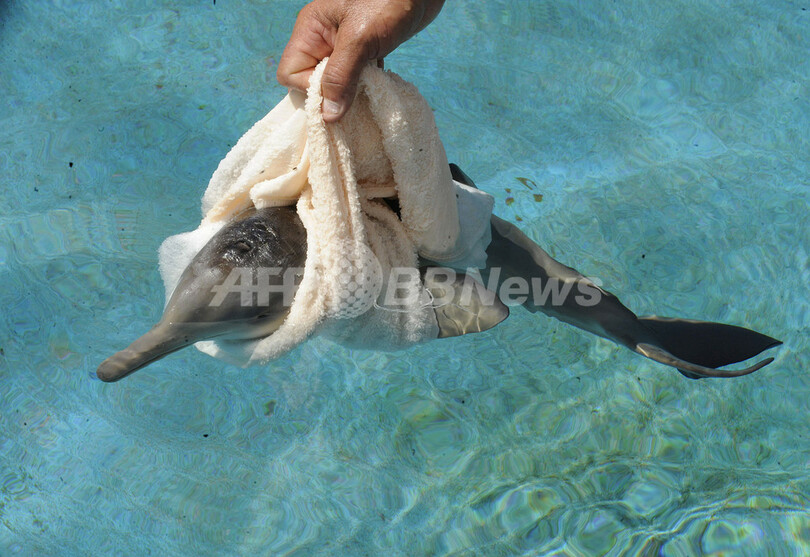 写真は、保護された生後約10日のイルカ(2010年11月5日撮影)。(c)AFP/Miguel ROJO