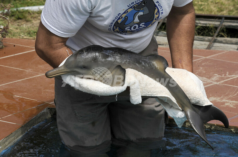 【11月6日 AFP】ウルグアイの首都モンテビデオ(Montevideo)から140キロ離れたマルドナルド(Maldonado)県の海岸で、生後約10日のイルカが保護された。現在はプンタ・コロラダ(Punta Colorada)で、海洋生物の保護団体SOSファウナ・マリーナ(SOS Fauna Marina)が飼育している。(c)AFP