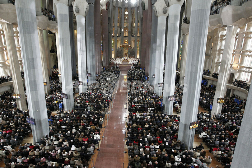 サグラダ・ファミリアの大聖堂で神父や司教ら6500人が参列して行われた聖別ミサでは、800人の聖歌隊による歌声が響き渡るなか、法王が聖堂に聖水を注ぎ、同教会は着工から128年目にして法王庁が認定する上位の教会「バシリカ」となった。