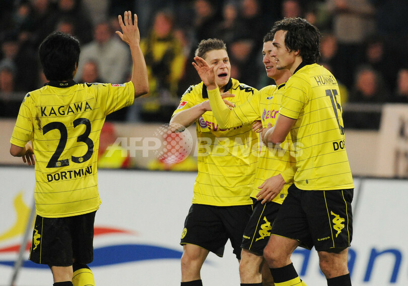 その後、ドルトムントは32分にヤクブ・ブワシチコフスキ(Jakub Blaszczykowski)がハノーバーのカリム・ハグイ(Karim Haggui)に頭を蹴られて獲得したPKをヌリ・サヒン(Nuri Sahin)が失敗したが、36分にはロベルト・レワンドフスキ(Robert Lewandowski)の得点で加点。ロスタイムにはブワシチコフスキが4点目を決めた。(c)AFP