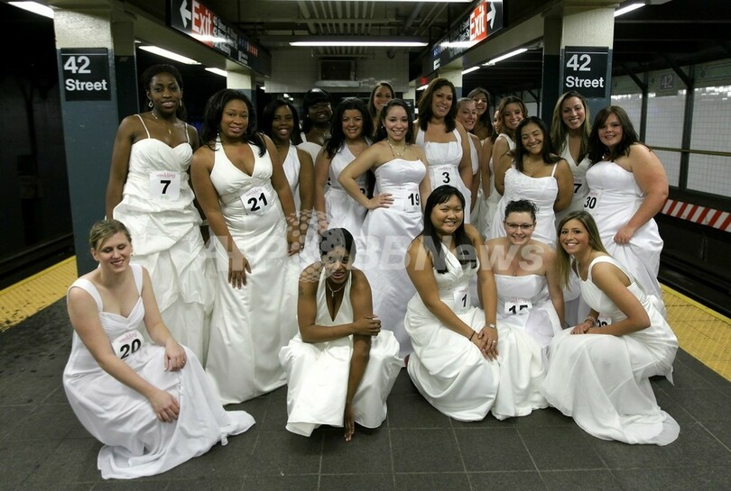 写真は、イベントに参加した花嫁たち(2010年11月9日撮影)。(c)AFP/Getty Images for WE tv and Wedding Central/Neilson Barnard