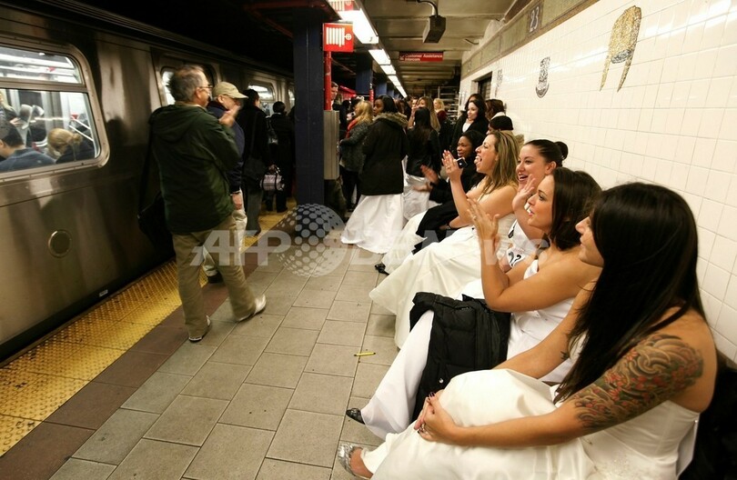 写真は、イベントに参加した花嫁たち(2010年11月9日撮影)。(c)AFP/Getty Images for WE tv and Wedding Central/Neilson Barnard