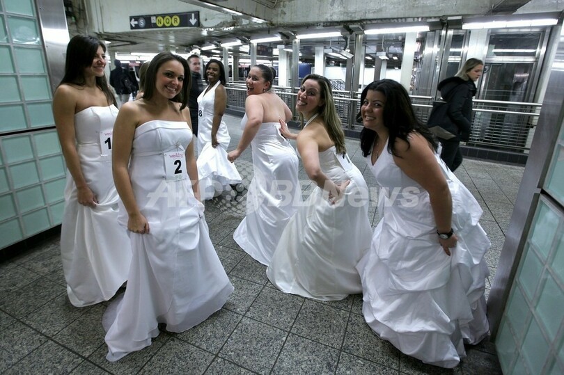 写真は、イベントに参加した花嫁たち(2010年11月9日撮影)。(c)AFP/Getty Images for WE tv and Wedding Central/Neilson Barnard