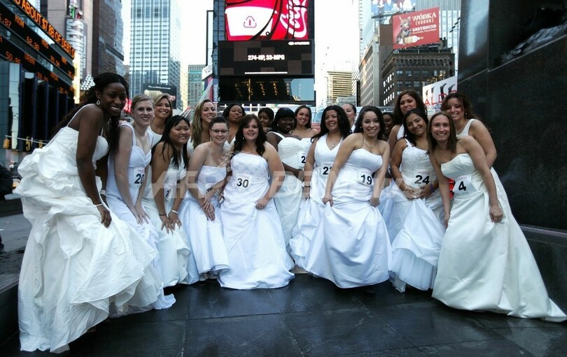 写真は、イベントに参加した花嫁たち(2010年11月9日撮影)。(c)AFP/Getty Images for WE tv and Wedding Central/Neilson Barnard