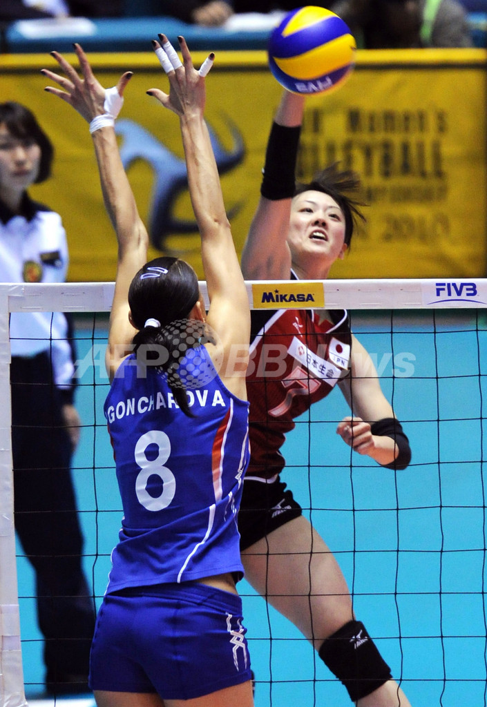 【11月11日 AFP】女子バレーボール世界選手権(2010 FIVB Women's Volleyball World Championship)は10日、東京・国立代々木競技場などで2次リーグ最終戦が行われ、E組の日本はロシアに1-3(21-25、14-25、25-23、13-25)で敗れた。7戦全勝のロシアがE組1位、5勝2敗の日本が同組2位で準決勝に進出する。