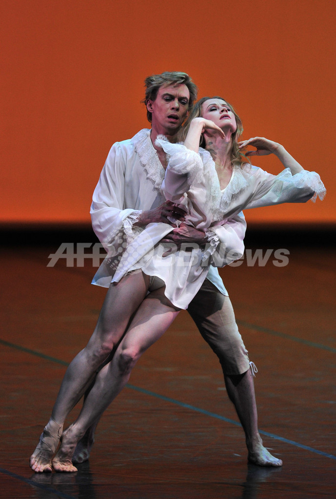 ドイツ・ベルリン(Berlin)で9日、ダンサー/振付家のウラジーミル・マラーホフ(Vladimir Malakhov)を筆頭とするバレエダンサーが競演する「Malakhov and Friends」の報道陣向けのパフォーマンスが公開された。公演は10日から。写真は、アンジェラン・プレルジョカージュ(Angelin Preljocaj)振付の「ル・パルク(Le Parc)」を踊るマラーホフとナディア・サイダコワ(Nadia Saidakova、2010年11月9日撮影)。(c)AFP/JOHN MACDOUGALL