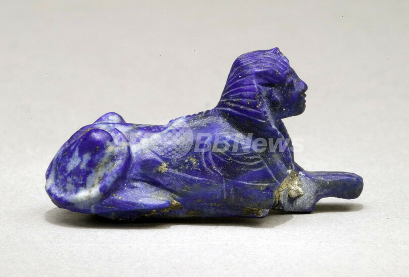 返還される品の中には、金の首輪をしたブロンズ製の犬の像やラピスラズリ製のスフィンクス像などが含まれている。(c)AFP/Samer al-Atrush