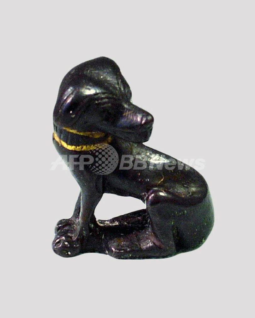 返還される品の中には、金の首輪をしたブロンズ製の犬の像やラピスラズリ製のスフィンクス像などが含まれている。(c)AFP/Samer al-Atrush