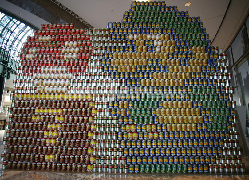 【11月12日 AFP】缶詰食品で作ったアートの展示会が11日、ニューヨーク(New York)のワールド・フィナンシャル・センター(World Financial Center)で始まった。作品のデザインコンテストも同時に行われている。展示終了後、解体された缶詰は慈善団体「シティー・ハーベスト」を通じて恵まれないニューヨーク市民へ提供される。(c)AFP