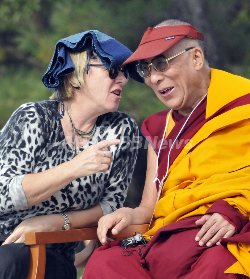 写真は、平和記念公園での式典に出席するチベット仏教の最高指導者ダライ・ラマ14世と、地雷撲滅運動家のジョディ・ウィリアムズ(Jody Williams)さん(2010年11月14日撮影)。(c)AFP/Yoshikazu TSUNO