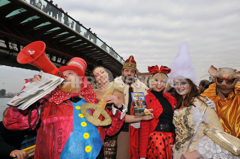 「Venessia」はこのデモ行進について、観光化と物価高騰の流れを食い止められずにいる市当局への「挑発的な皮肉」だとしている。ベネチアの住民人口はわずか5万9000人ほど。(c)AFP