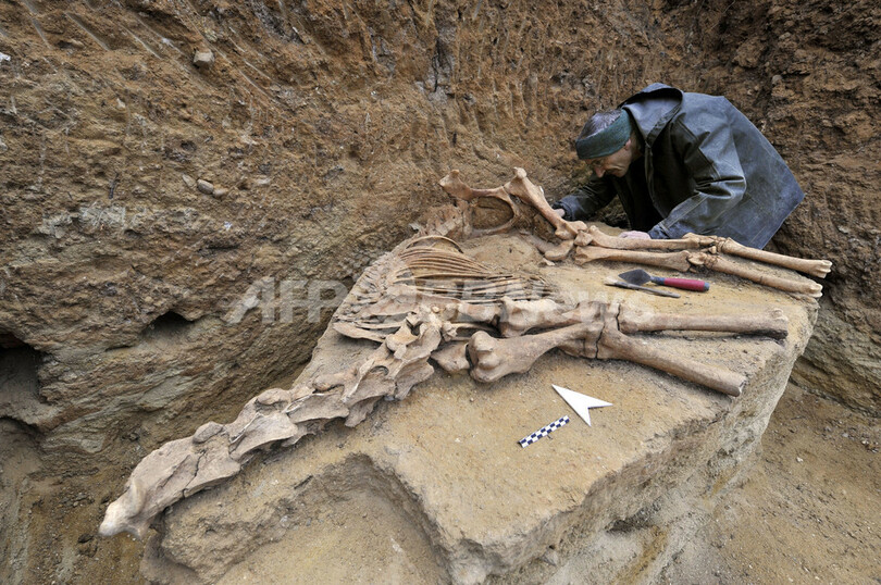ニュース ライフ 完ぺきな姿で発見、10万年前の馬の化石 2010年11月17日 20:53 発信地:フランス [ ヨーロッパ フランス ] このニュースをシェア ‹ › ❮ 5/7 ❯ 写真は、化石の発掘作業を行う考古学者(2010年11月16日撮影)。(c)AFP/THIERRY ZOCCOLAN 画像作成中 ! 【11月17日 AFP】フランス中部モリア(Moriat)の農地で、先史時代の馬の骨の化石が見つかった。農民が地下2メートルの深さから発見したこの化石は、10万年以上前のものであるにもかかわらず完璧な形を残しており、考古学の分野では非常に珍しい発見とされている。(c)AFP ライフ 一覧へ> メディア・報道関係・法人の方向け 写真・動画 購入のお問合せ>