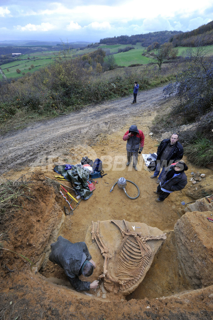 ニュース ライフ 完ぺきな姿で発見、10万年前の馬の化石 2010年11月17日 20:53 発信地:フランス [ ヨーロッパ フランス ] このニュースをシェア ‹ › ❮ 2/7 ❯ 校正していただいたものを入れてください。写真は、化石の発掘作業を行う考古学者ら(2010年11月16日撮影)。(c)AFP/THIERRY ZOCCOLAN 画像作成中 ! 【11月17日 AFP】フランス中部モリア(Moriat)の農地で、先史時代の馬の骨の化石が見つかった。農民が地下2メートルの深さから発見したこの化石は、10万年以上前のものであるにもかかわらず完璧な形を残しており、考古学の分野では非常に珍しい発見とされている。(c)AFP ライフ 一覧へ> メディア・報道関係・法人の方向け 写真・動画 購入のお問合せ>
