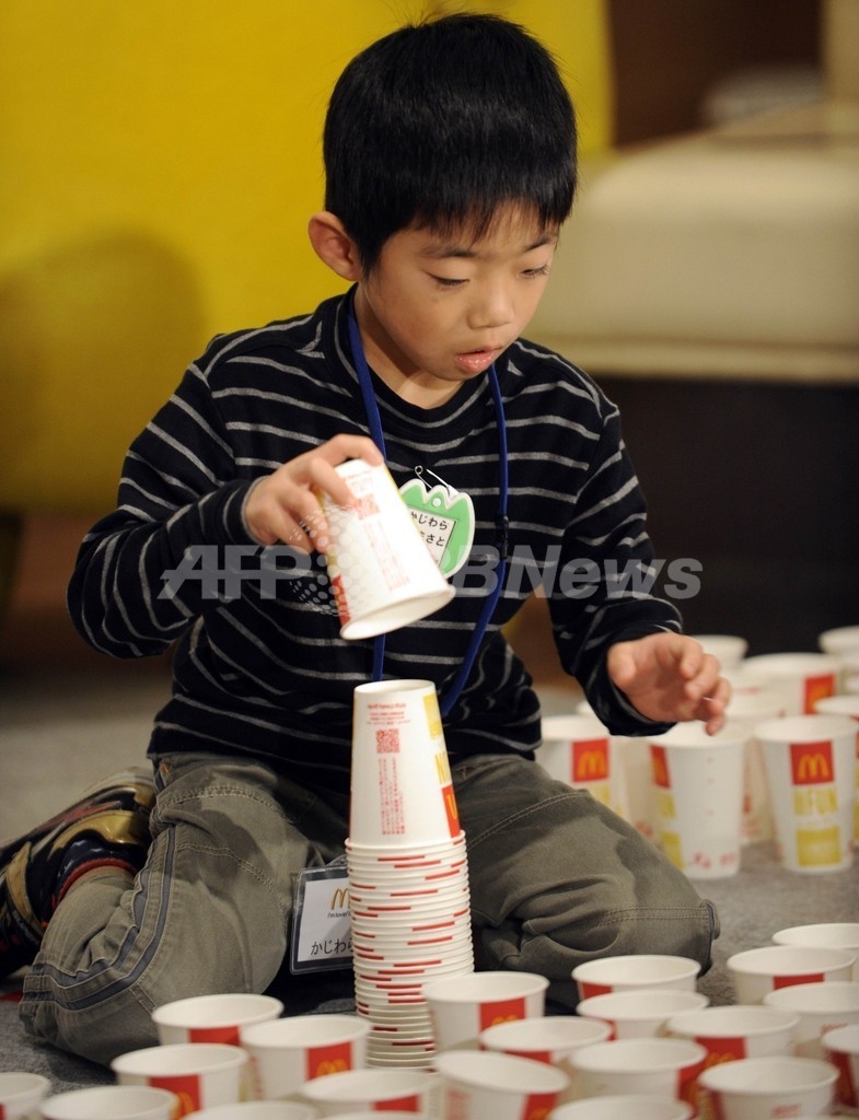 ニュース ライフ 東京の6歳児、「紙コップの積み重ね」でギネス記録更新 2010年11月18日 17:32 発信地:東京 [ アジア・オセアニア 東京 ] このニュースをシェア ‹ › ❮ 3/4 ❯ 都内のファストフード店で、30秒でできるだけ高く紙コップを積み上げるギネス世界記録(Guinness Book of World Records)に挑む6歳の保育園児、梶原柾人(Masato Kajiwara)くん(2010年11月18日撮影)。(c)AFP/Yoshikazu TSUNO 画像作成中 ! 【11月18日 AFP】都内のファストフード店で18日、30秒間にできるだけ高く紙コップを積み重ねるギネス世界記録(Guinness Book of World Records)に子どもたちが挑戦した。保育園児の梶原柾人(Masato Kajiwara)くん(6)が27センチを達成し、みごとギネス記録を更新した。(c)AFP ライフ 一覧へ> メディア・報道関係・法人の方向け 写真・動画 購入のお問合せ>