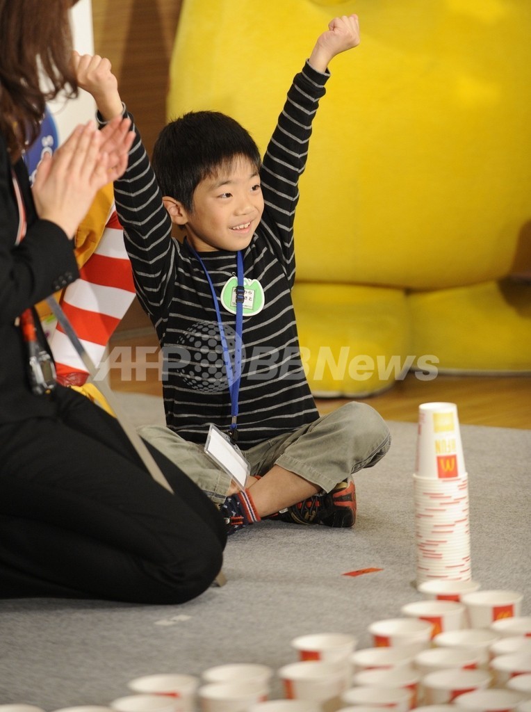 ニュース ライフ 東京の6歳児、「紙コップの積み重ね」でギネス記録更新 2010年11月18日 17:32 発信地:東京 [ アジア・オセアニア 東京 ] このニュースをシェア ‹ › ❮ 2/4 ❯ 都内のファストフード店で、30秒でできるだけ高く紙コップを積み上げるギネス世界記録(Guinness Book of World Records)を達成した6歳の保育園児、梶原柾人(Masato Kajiwara)くん(2010年11月18日撮影)。(c)AFP/Yoshikazu TSUNO 画像作成中 ! 【11月18日 AFP】都内のファストフード店で18日、30秒間にできるだけ高く紙コップを積み重ねるギネス世界記録(Guinness Book of World Records)に子どもたちが挑戦した。保育園児の梶原柾人(Masato Kajiwara)くん(6)が27センチを達成し、みごとギネス記録を更新した。(c)AFP ライフ 一覧へ> メディア・報道関係・法人の方向け 写真・動画 購入のお問合せ>