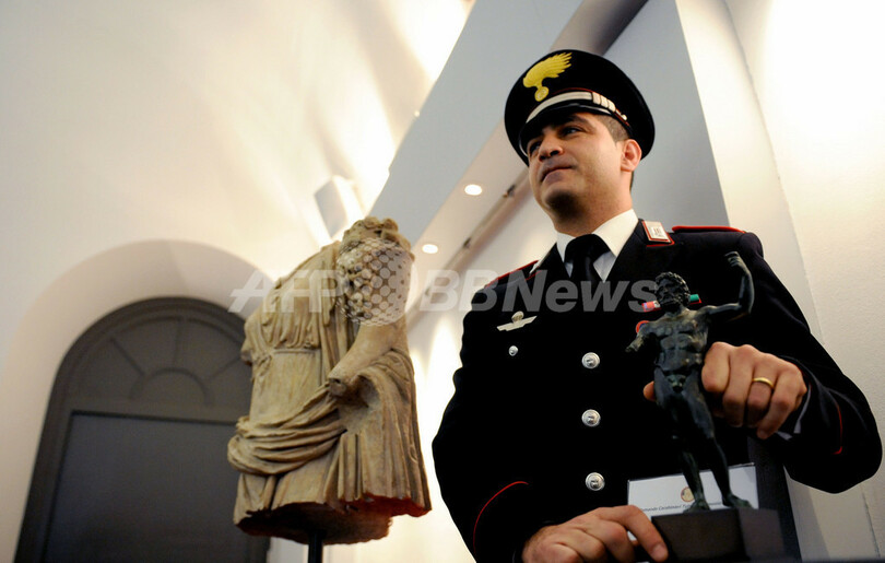 一緒に返還された銅像は、1980年にローマ国立博物館(National Roman Museum)から盗まれたものだった。2006年に競売大手サザビーズ(Sotheby's)がニューヨークで競売にかけ、その後、米オハイオ(Ohio)州クリーブランド(Cleveland)で展示されていた。所有者の米国人女性が、イタリアへの返還に同意したという。(c)AFP