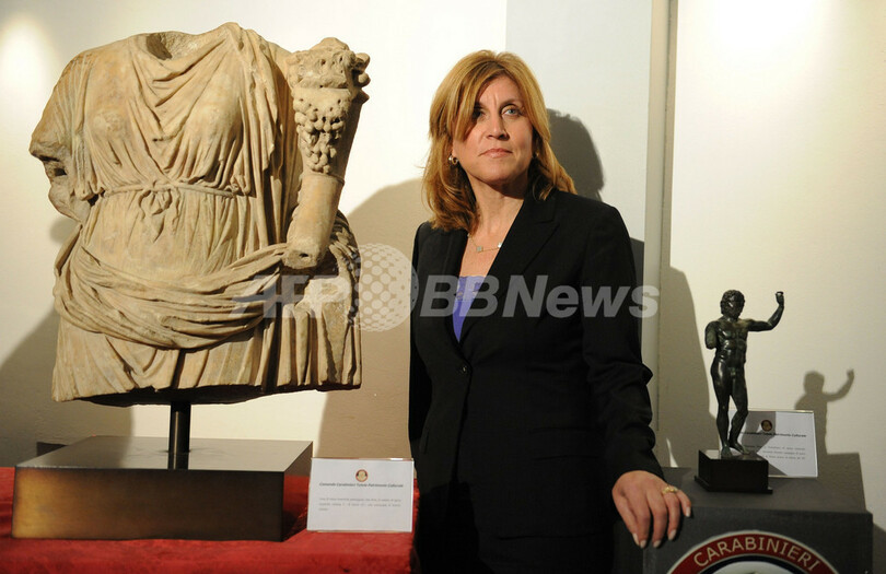 一緒に返還された銅像は、1980年にローマ国立博物館(National Roman Museum)から盗まれたものだった。2006年に競売大手サザビーズ(Sotheby's)がニューヨークで競売にかけ、その後、米オハイオ(Ohio)州クリーブランド(Cleveland)で展示されていた。所有者の米国人女性が、イタリアへの返還に同意したという。(c)AFP
