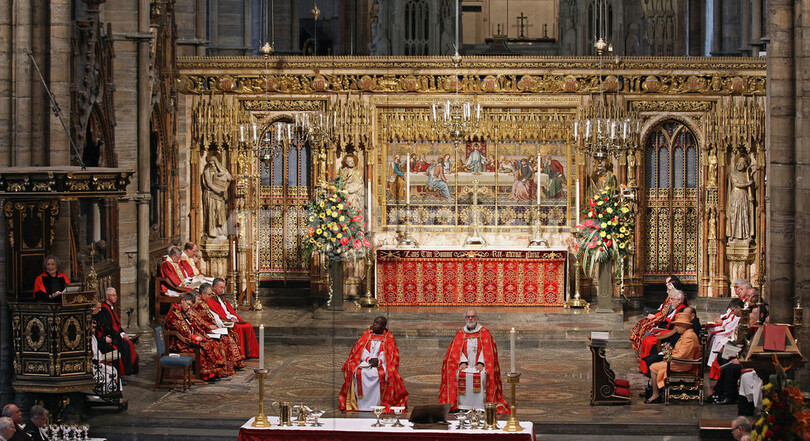 英国会議事堂の隣に構えるウェストミンスター寺院は、1066年の征服王ウィリアム(William the Conqueror)以来、英国君主の戴冠式の場として定着した。17人の君主の墓もここにある。またエリザベス女王(Queen Elizabeth)は1947年、現在のフィリップ殿下(Prince Philip)とここで結婚した。アン王女(Princess Anne)とアンドリュー王子(Prince Andrew)もここで挙式しているが、この2人は離婚している。(c)AFP/Robin Millard