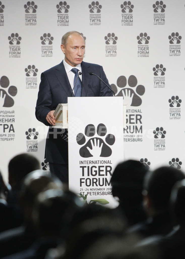 【11月24日 AFP】ロシアのウラジーミル・プーチン(Vladimir Putin)首相は23日、サンクトペテルブルク(Saint Petersburg)で開催中の「世界トラ・サミット(International Tiger Conservation Forum)」に出席し、野生のトラの生息状況について「絶滅寸前だ」と危機感を訴えた。