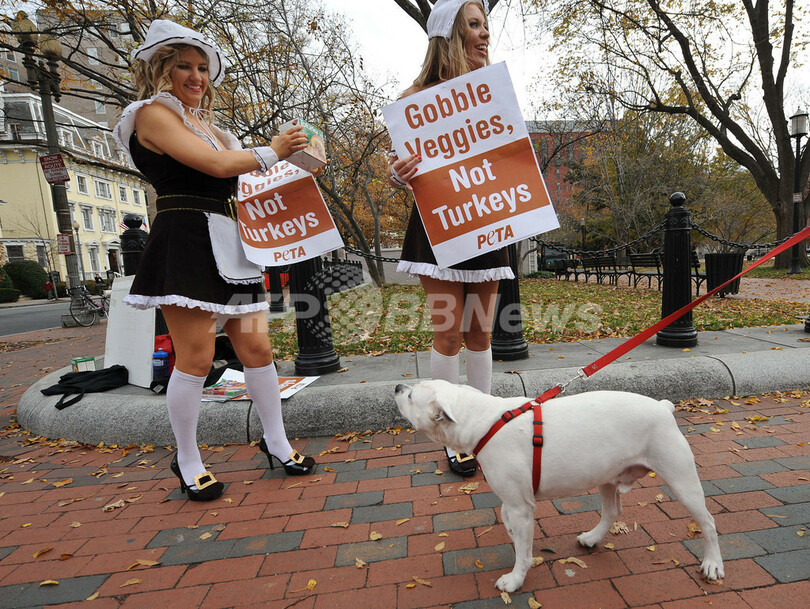 ニュース ライフ 今回のPETAはメイドさん、「七面鳥食べないで!」 2010年11月25日 11:44 発信地:ワシントンD.C./米国 [ 北米 米国 ] このニュースをシェア ‹ › ❮ 3/6 ❯ ホワイトハウスの前でプラカードを掲げ、トーファーキーを配るPETAの活動家(2010年11月23日撮影)。(c)AFP/Nicholas KAMM 画像作成中 ! 【11月25日 AFP】25日の感謝祭を前に、動物愛護団体PETA(動物の倫理的扱いを求める人々の会)の活動家が23日、ホワイトハウスの前で、七面鳥ではなく「トーファーキー(七面鳥の丸焼きに似せた豆腐)」を食べるよう訴える活動を行った。(c)AFP ライフ 一覧へ> メディア・報道関係・法人の方向け 写真・動画 購入のお問合せ>
