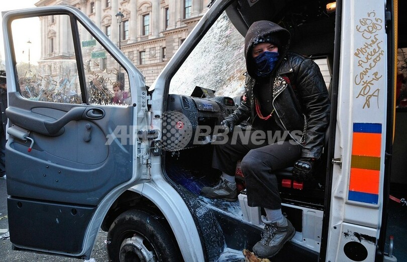 10日に続き今月2度目の授業料値上げ反対デモが行われたロンドン(London)では約1万人が参加。一部が暴徒化し、官公庁が集まるホワイトホール(Whitehall)周辺で警察車両を破壊したりバス停に火を付けたりしたほか、外務省の壁に落書きをしたり国防省への侵入を試みるなどした。この騒動で32人が逮捕され、警官2人を含む17人が負傷した。マンチェスター(Manchester)やブライトン(Brighton)、ケンブリッジ(Cambridge)などでも数千人規模のデモが繰り広げられた。