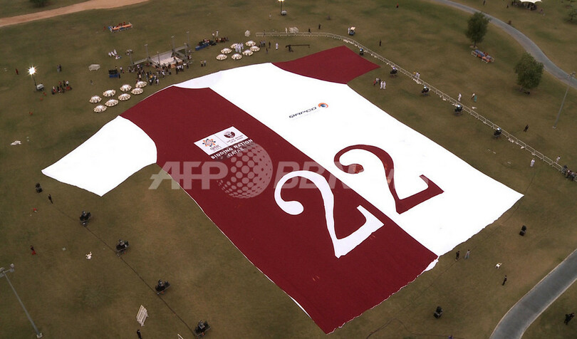 【11月26日 AFP】2022年のサッカー・ワールドカップ(W杯)招致をめざすカタールの首都ドーハ(Doha)に登場した「世界最大のサッカージャージ」が23日、ギネス世界記録(Guinness Book of World Records)に認定された。招致活動を後援している同国の石油化学大手、カタール・ペトロケミカル(Qatar Petrochemical、QAPCO)が製作した。(c)AFP