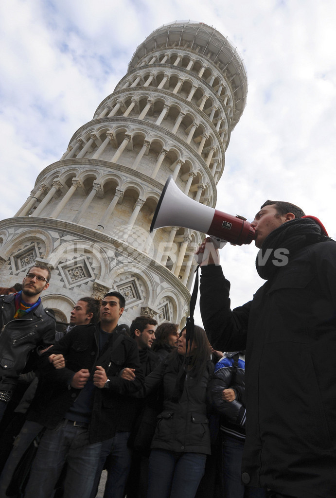 教育予算カットに抗議、学生がピサの斜塔を一時占拠 イタリア