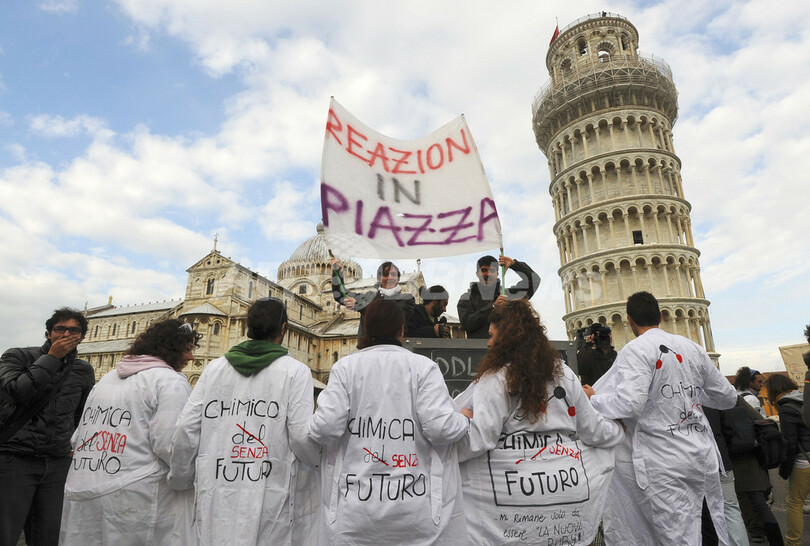 ピサの斜塔では、30人あまりの学生が塔を占拠し、2層目から「大学改革に反対」と書いた垂れ幕を下げた。塔の周囲でも、1000人あまりが抗議集会を開いた。この騒ぎで、観光客らが避難し、塔は一時閉鎖された。