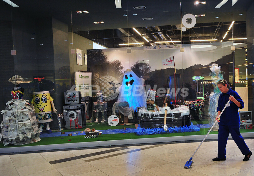 【11月26日 AFP】消費主義が環境に与える影響に警鐘を鳴らそうと、ルーマニアの首都ブカレスト(Bucharest)にある巨大ショッピングモールで、全てゴミでできたアートの展覧会が開かれている。