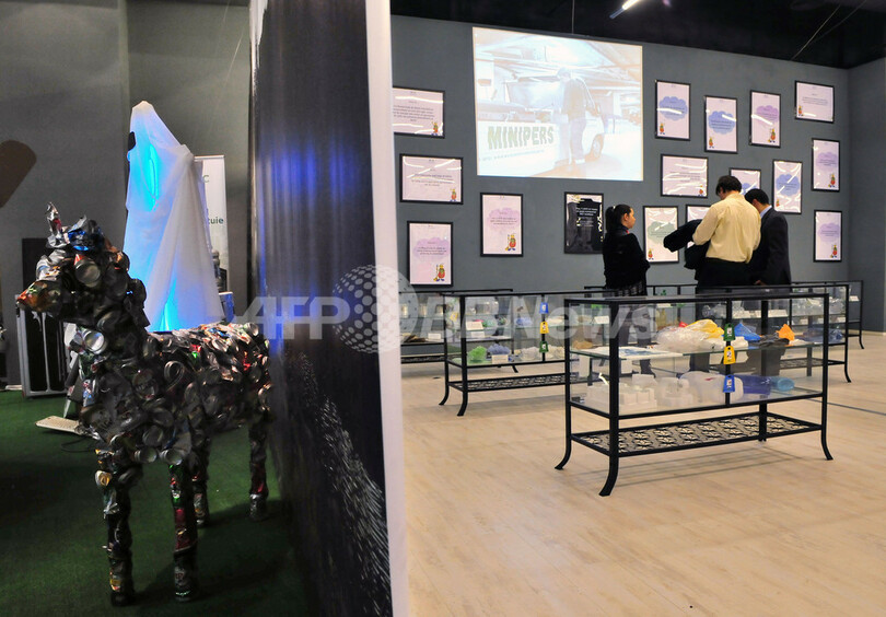 「買う前に考えて」、ゴミのアート展で消費主義に警鐘 ルーマニア
